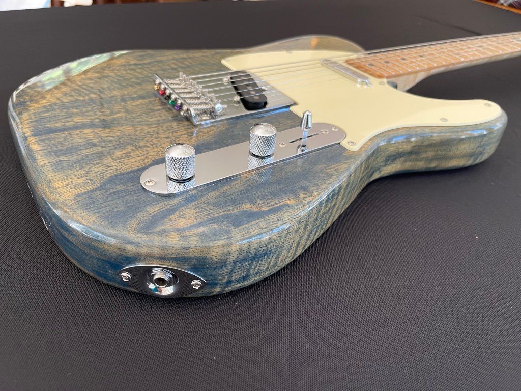 The sound of California is in this piece. From the sunset on the headstock to the turtle trying to reach the shore of the blue foam tide telecaster. California dreaming.